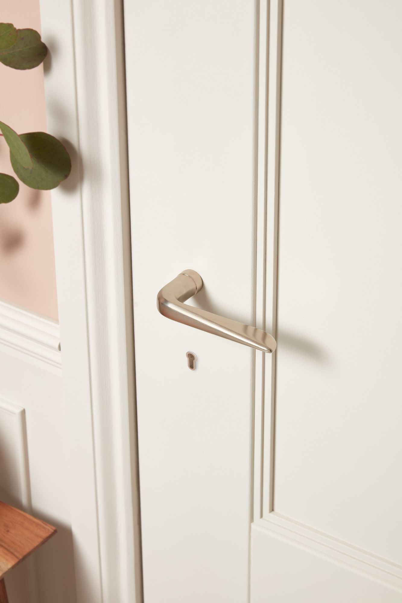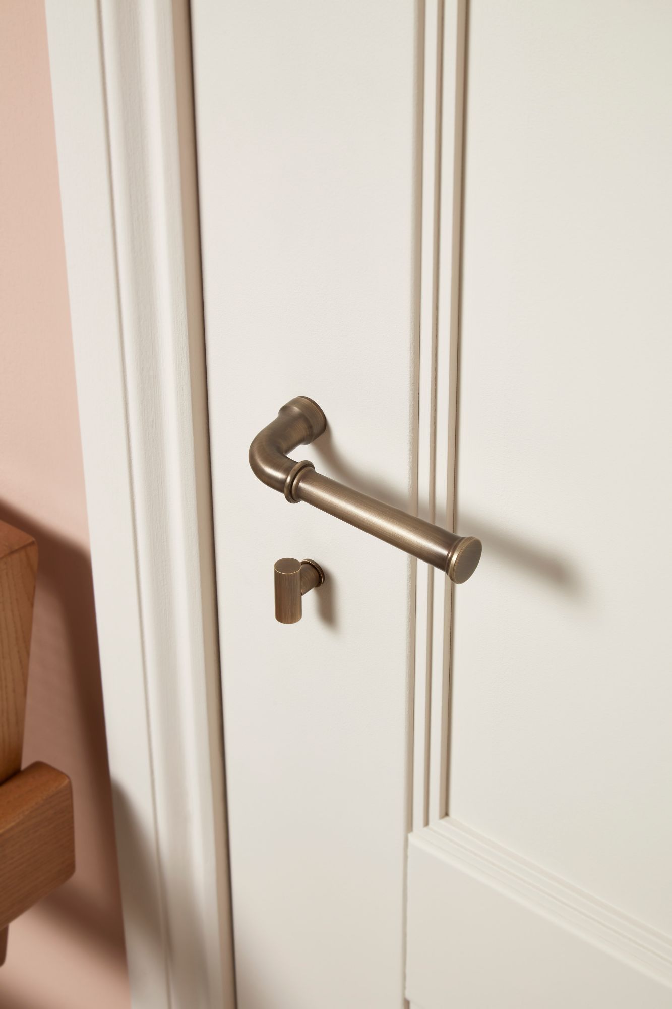 At only 26mm in diameter – 16mm for turns – the Minimalist Rose sits unobtrusively on the door, allowing the fine detail and silhouette of the hardware to take centre stage.