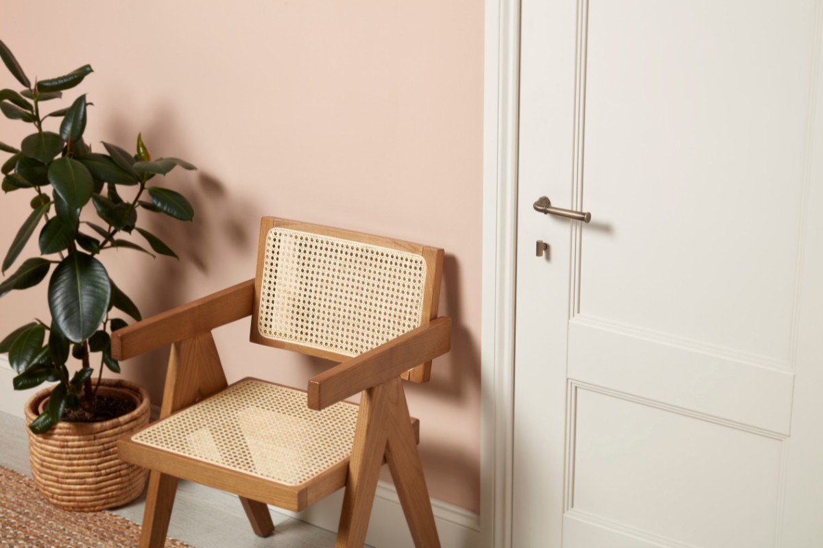 Painted in a unique, muted mauve, the kitchen displays hints of earthy undertones, giving it a modern and sophisticated look yet still complimenting the overall aesthetic of the Villa.