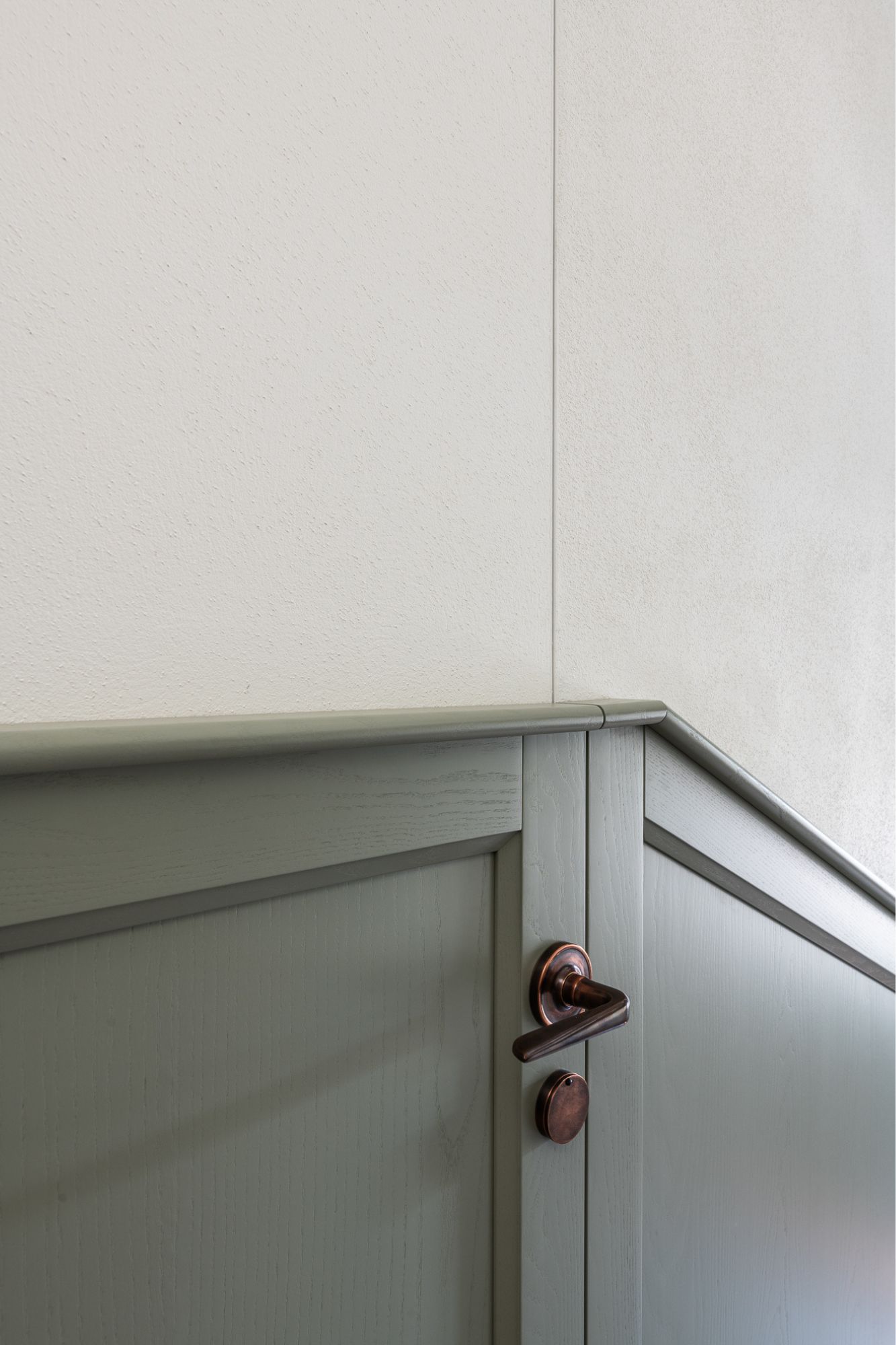 Throughtout the property, the Celeste lever on a 65mm Raised Edge rose adorns the generously sized doors, in an Autumn Bronze finish providing contrast to the neutral colours of the doors, wall and panelling.