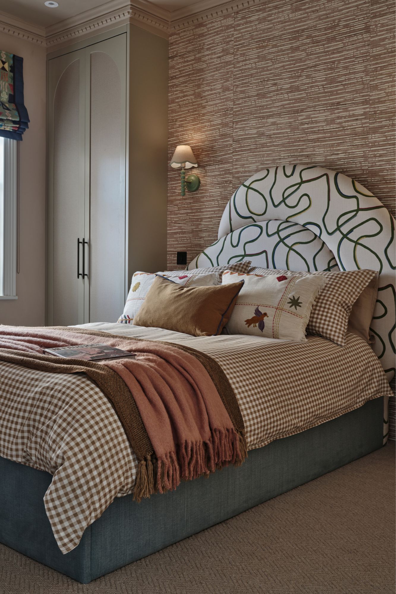 The project was further elevated through the collaboration of distinguished brand partners. With inspiration rooted in her Welsh heritage, Kelly Jenkins brought a custom bench to life, layering it with symbols of love, comfort, and home to create a stunning, one-of-a-kind art piece. Phillip Jeffries wallcoverings enveloped the interiors in a sophisticated, tactile warmth, while GP & J Baker fabrics introduced expressive pattern and refined texture across key furniture pieces, reinforcing the house as a celebration of design, craftsmanship and collaboration.