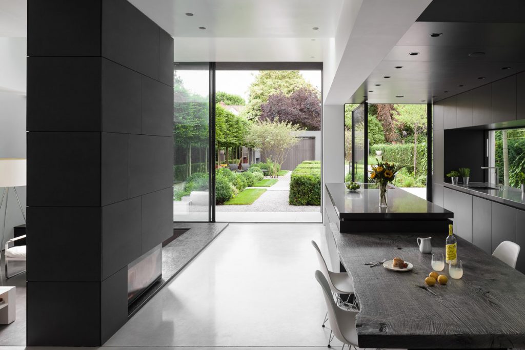 The main hurdle was getting everything lined up. As any designer will know, working with materials such as plaster and brick means there is no such thing as a dead straight wall or perfect angle. It was key to have everything perfectly in line, without this the monolithic look would have been interrupted. We worked extremely closely with the builders and architects working on this project, and were able to ensure the entire project was supremely exact, maintaining the project’s perfectly aligned look.