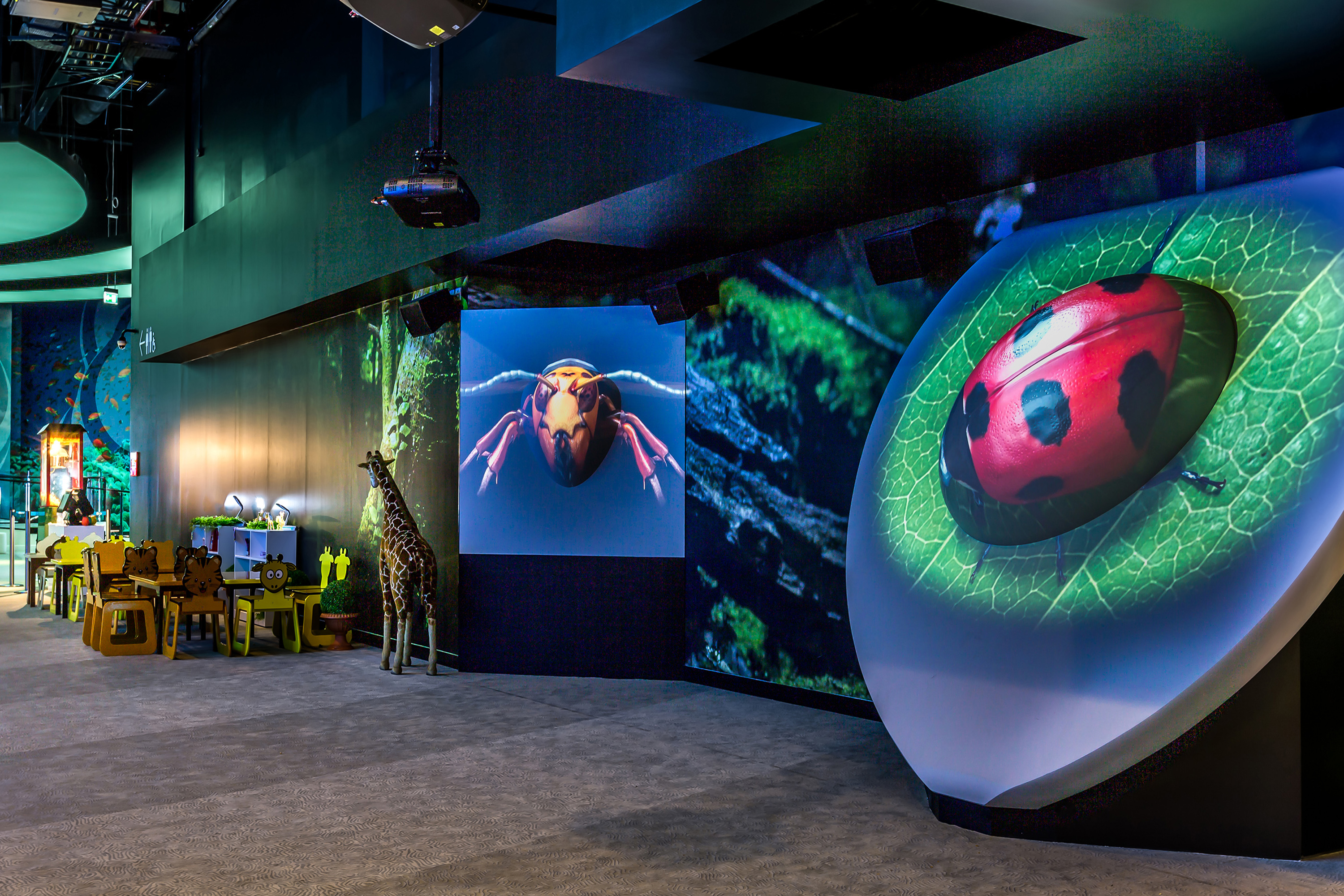 To create an interactive, multi-sensory and educational virtual wildlife park for people of all generations. BBC Earth’s world-leading nature content was teamed with SEGA’s cutting edge technology to plunge visitors into the heart of the natural world and Bluehaus Group were briefed to develop the interior design and MEP engineering design to suit and integrate all technology to create an experience that replicates the reality of being among nature. This technology includes laser projected images and videos, a sophisticated 22 point sound system with 3D soundscapes, scent technology, wind, fog, strobe lighting and vibrations.