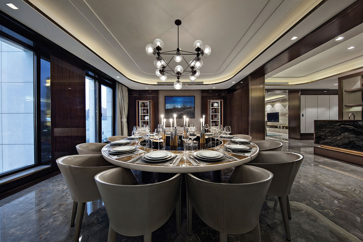 Located in the heart of the prestigious Gubei International Residence area, the client hoped that One Park Shanghai would not only serve as an extravagant residence but also serve as a place for business. Due to the fact that residential and commercial/business designs are different in terms of the ambience and functions, the design team had to find a way to accommodate both needs and requirements.