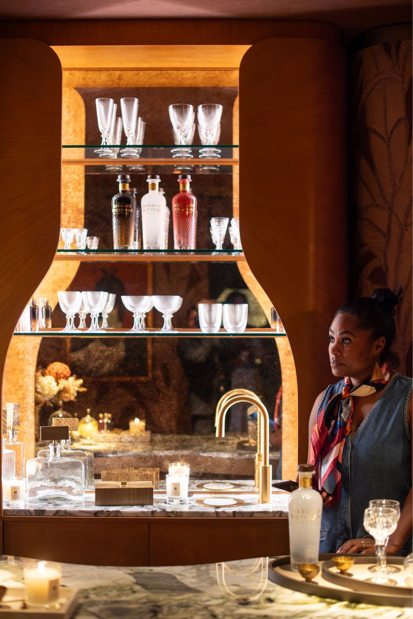 With a prime location next to the Decorex bar, this cinematic experience runs on a five-minute cycle, transforming the space through immersive lighting, invisible audio, and seamless integration.