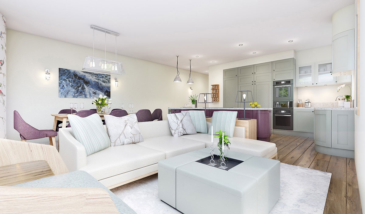 The kitchen. The open plan nature of modern kitchens means that having guests, family and friends round for get-togethers has become a prime function of the space and is top of the list of requirements in most briefs. It’s important to balance the essential elements and day-to-day needs of a family kitchen with the desire to entertain. Regardless of the kitchen size, the key to making it work for entertaining is to consider how people will move around it. As well as thinking about where and how you’ll be cooking, you need to plan where to serve food and if you want your guests to gather around a breakfast bar, sit at a table or make use of more casual seating.The open floor plan trend means a kitchen space often also includes a comfortable seating area and fireplace as well.