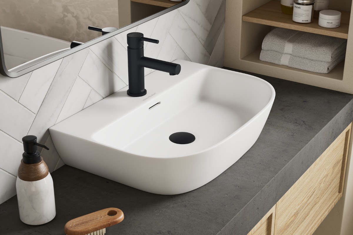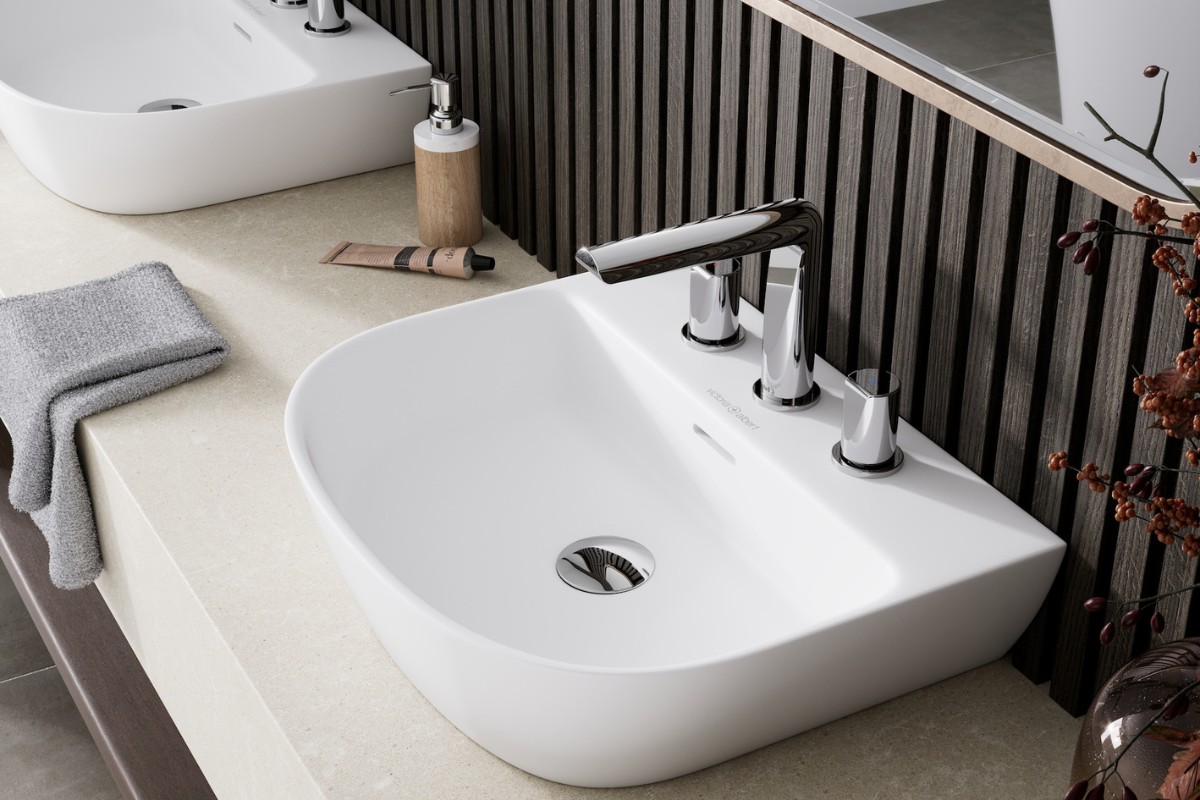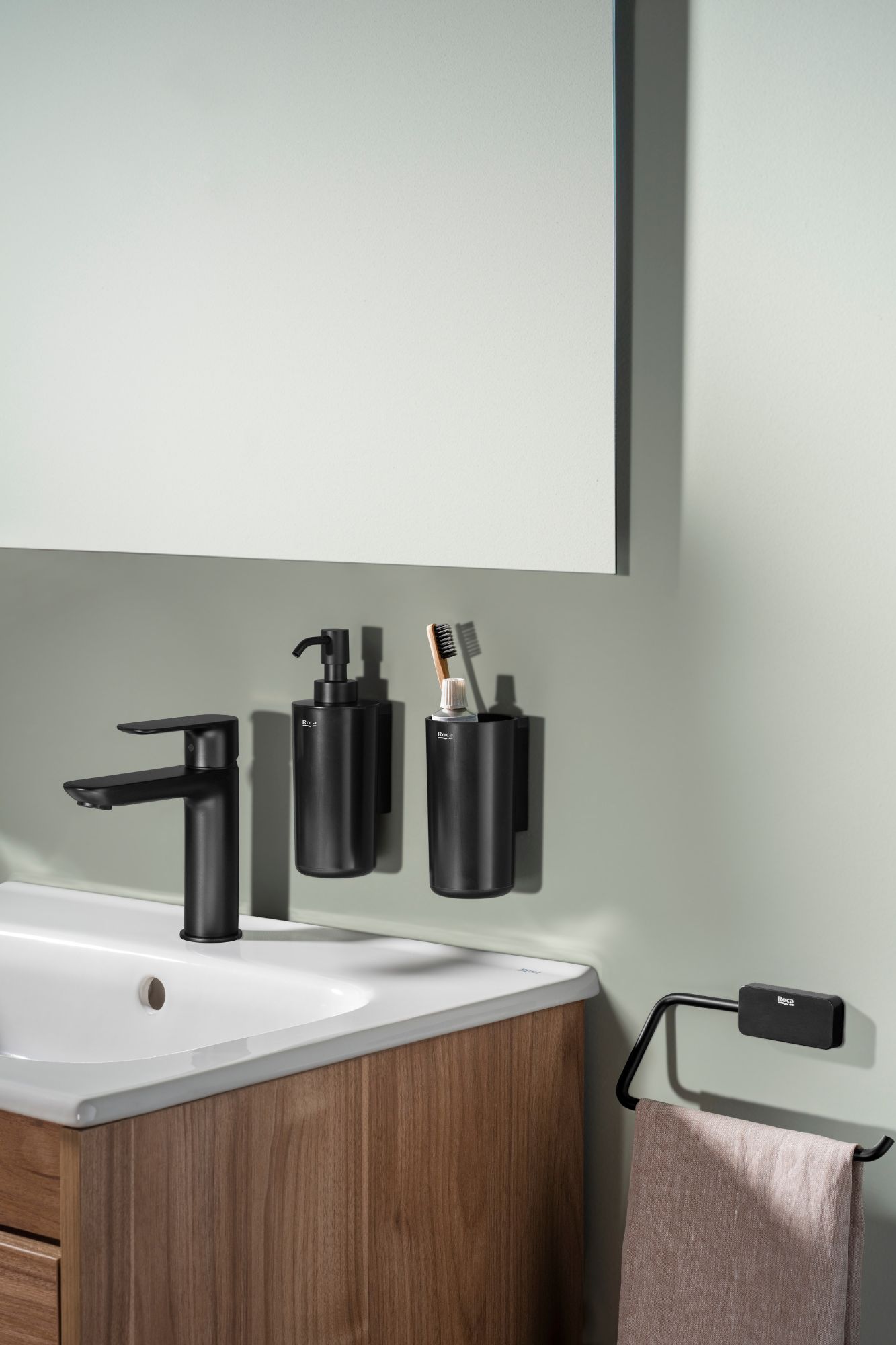 Designed by Stefan Diez, Roca’s Kay brassware collection epitomises this trend. Inspired by anchor mounting points, Kay introduces fluidity and strength – its oval-shaped operating lever adding a touch of softness to the otherwise angular design, while the sculptural form makes a bold visual impact. Available in six curated finishes – Chrome, Matt Black, Matt White, Brushed Brass, Brushed Graphite and Stainless Steel – the Kay collection offers versatility while enhancing the moody aesthetic that defines modern elegance.