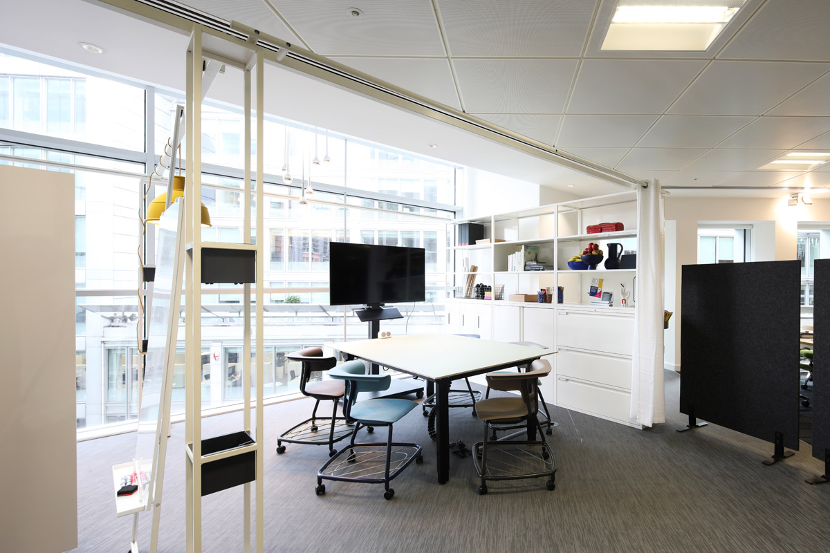 Sarah and her team worked with us to develop this brief which manifested in some really clever ideas that maximised user-controlled customisation. It was important for users to have full autonomy to reconfigure the space without having to call in support from facilities or IT. This makes it easier for those with varying physical abilities to be able to use the space. It also facilitates easy modification to help control noise and visual distractions.
