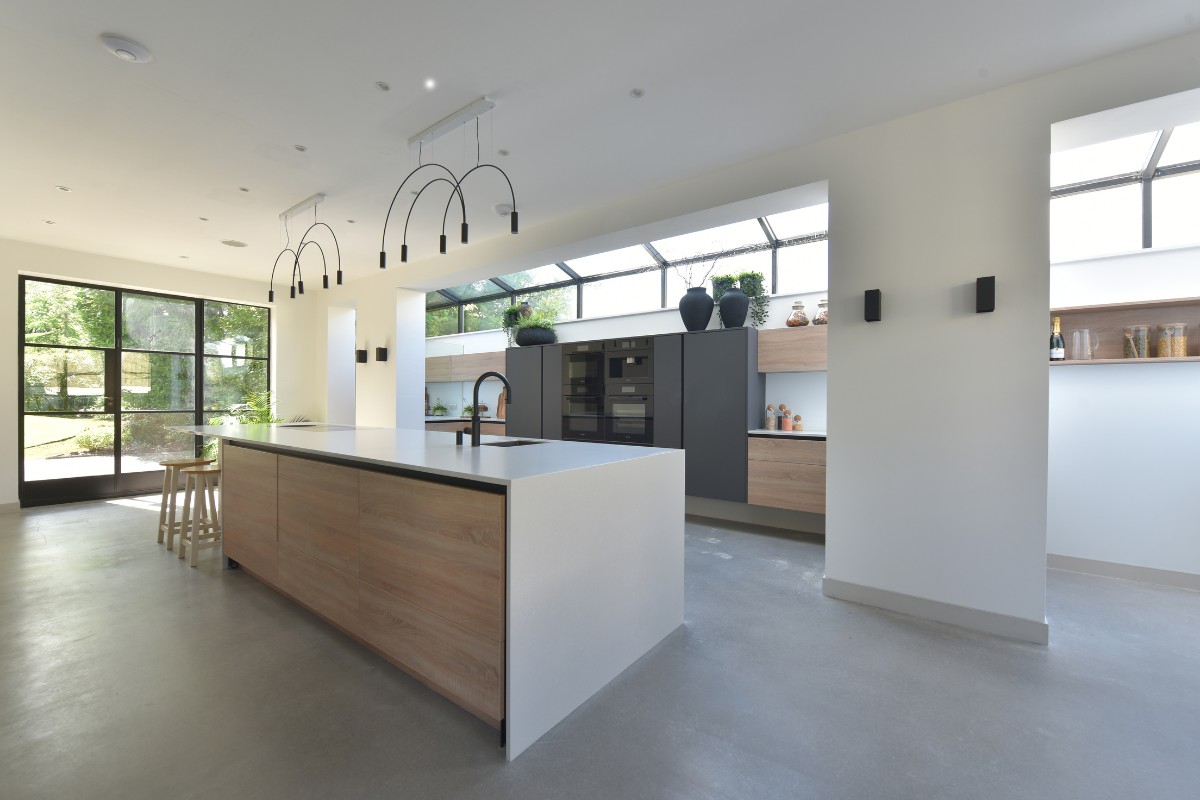 A key challenge was coordinating the integrated extraction within the island. Since the client chose a hob with built-in extraction, the island’s exact placement had to be finalized early to allow precise underfloor ducting installation. That left very little room for changes later in the process—demanding detailed advance planning and precision execution.