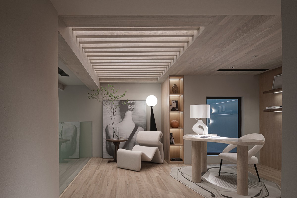 The space features a Chinese and Western kitchen, an oriental-style tea room, and a delicate and elaborate fragrance-blending room, together they form a comfortable and flowing space, while at the same time depicting the pursuit of a high quality of life. Artwork adds intrigue to the space to provoke deep thinking and the exploration of lifestyles of the urban elite.
