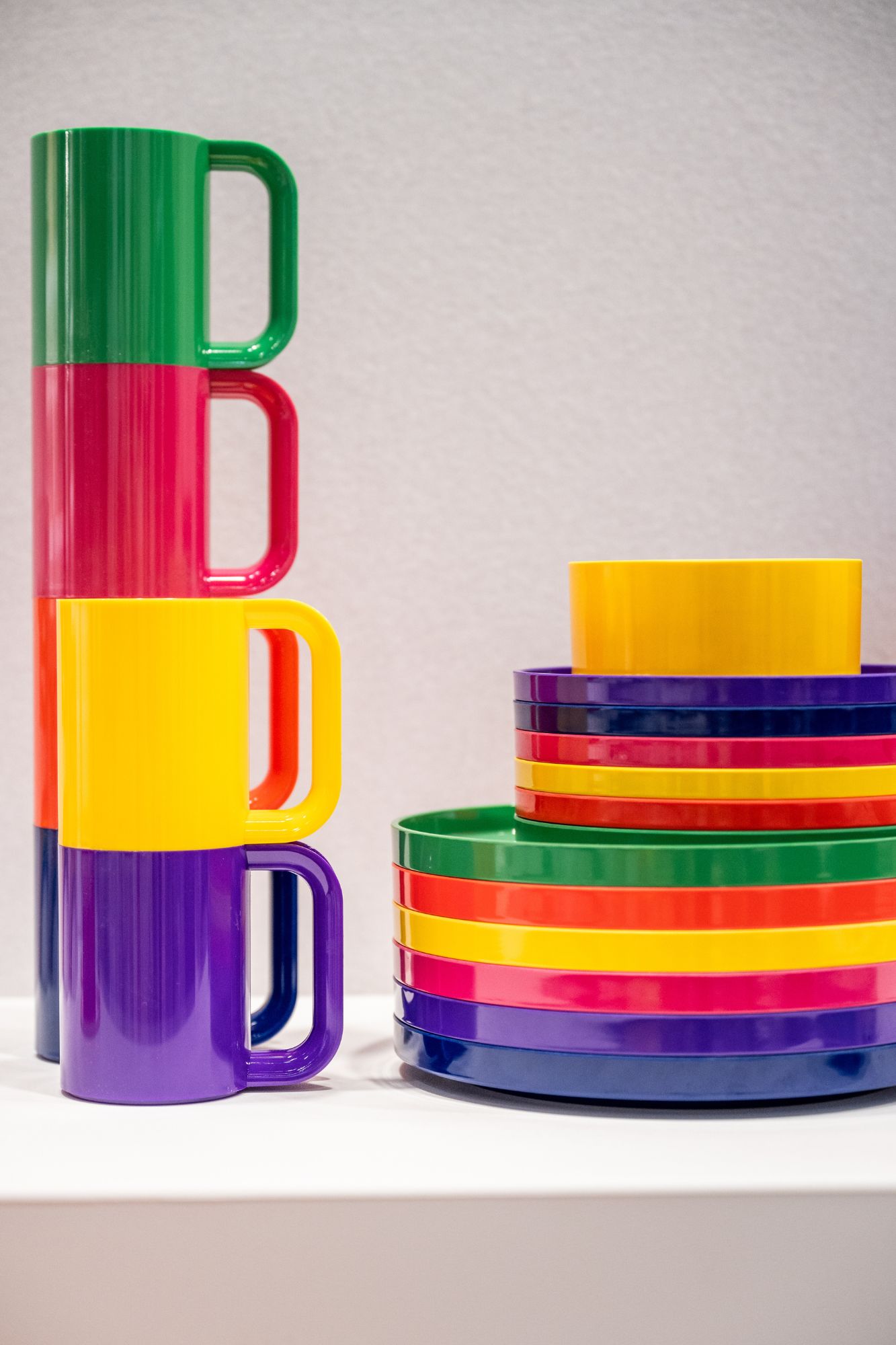 In the 1960s, the Space Age movement found its inspiration through space exploration and nuclear imagery. Its heritage is still expressed at the exhibition through objects with organic shapes and pop colours. Fisura's lava lamps are perhaps the most meaningful example.