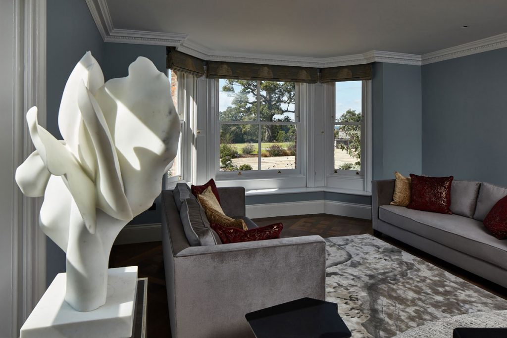 SBID member Kay Hare Art creates unique art pieces by mixing different eco-friendly materials and using unusual techniques. Her art brings liveliness and positivity to the overall ambience of interiors, inspiring the clients and shaping their awareness to make more environmentally conscious choices. The oil on linen paintings reflect dream landscapes with natural gemstone diamonds and gold leaf.
