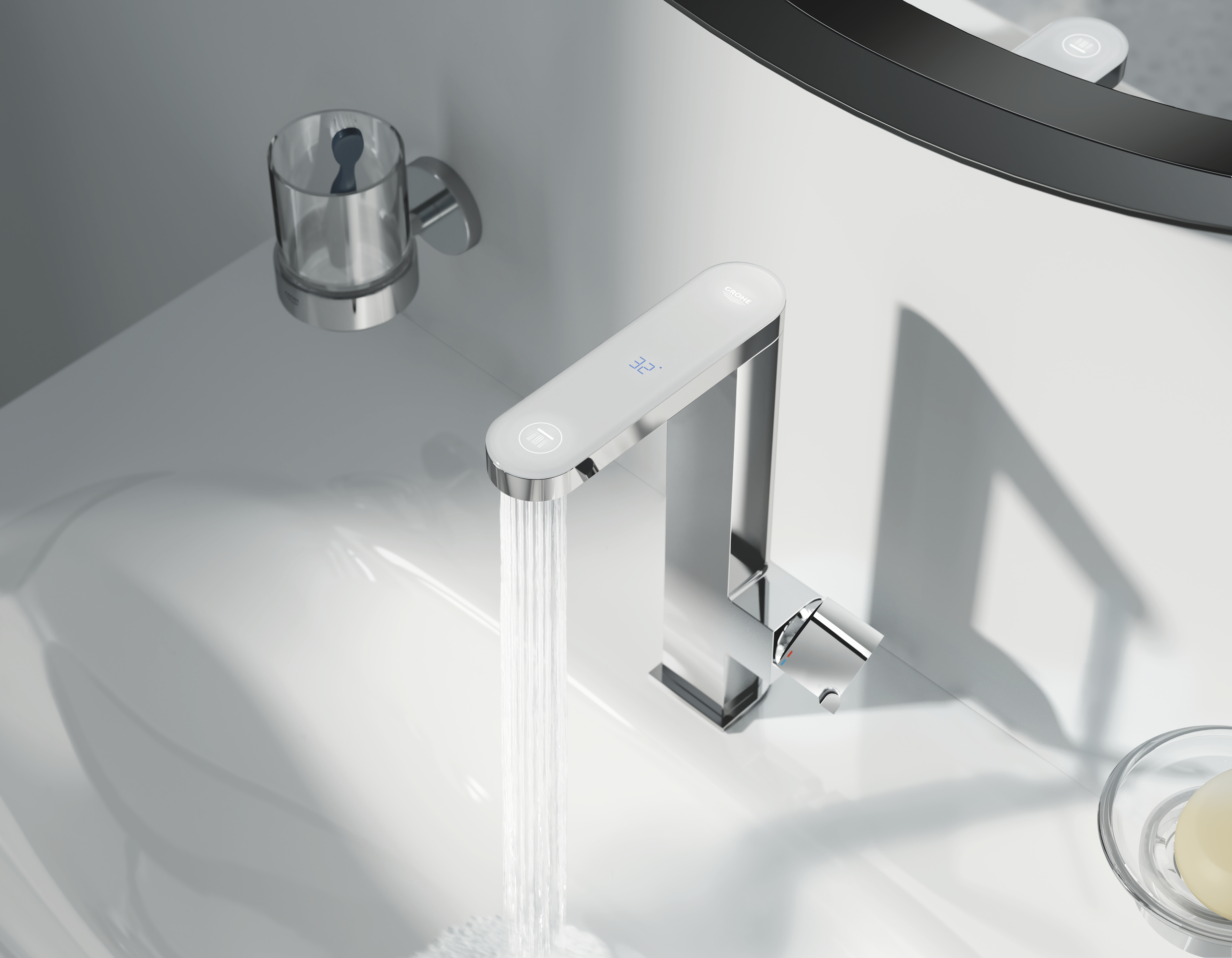 With its brand new GROHE Plus basin taps, global bathroom and kitchen fittings brand GROHE now offers users the possibility to accurately control the water temperature of their basin tap using the innovations of digitally-enhanced design. The digital upgrade within the existing GROHE Plus collection not only enables safe water enjoyment, but also supports users' increasing desire for sustainable living. Using the principle of “nudging”, a concept from behavioral economics, users are made aware through a visual colour change displayed on the spout of the tap when hot water is flowing - often unnecessarily – in order to encourage users to avoid wasting energy. This design approach promotes responsible use of the valuable resource of water and saves energy at the same time.