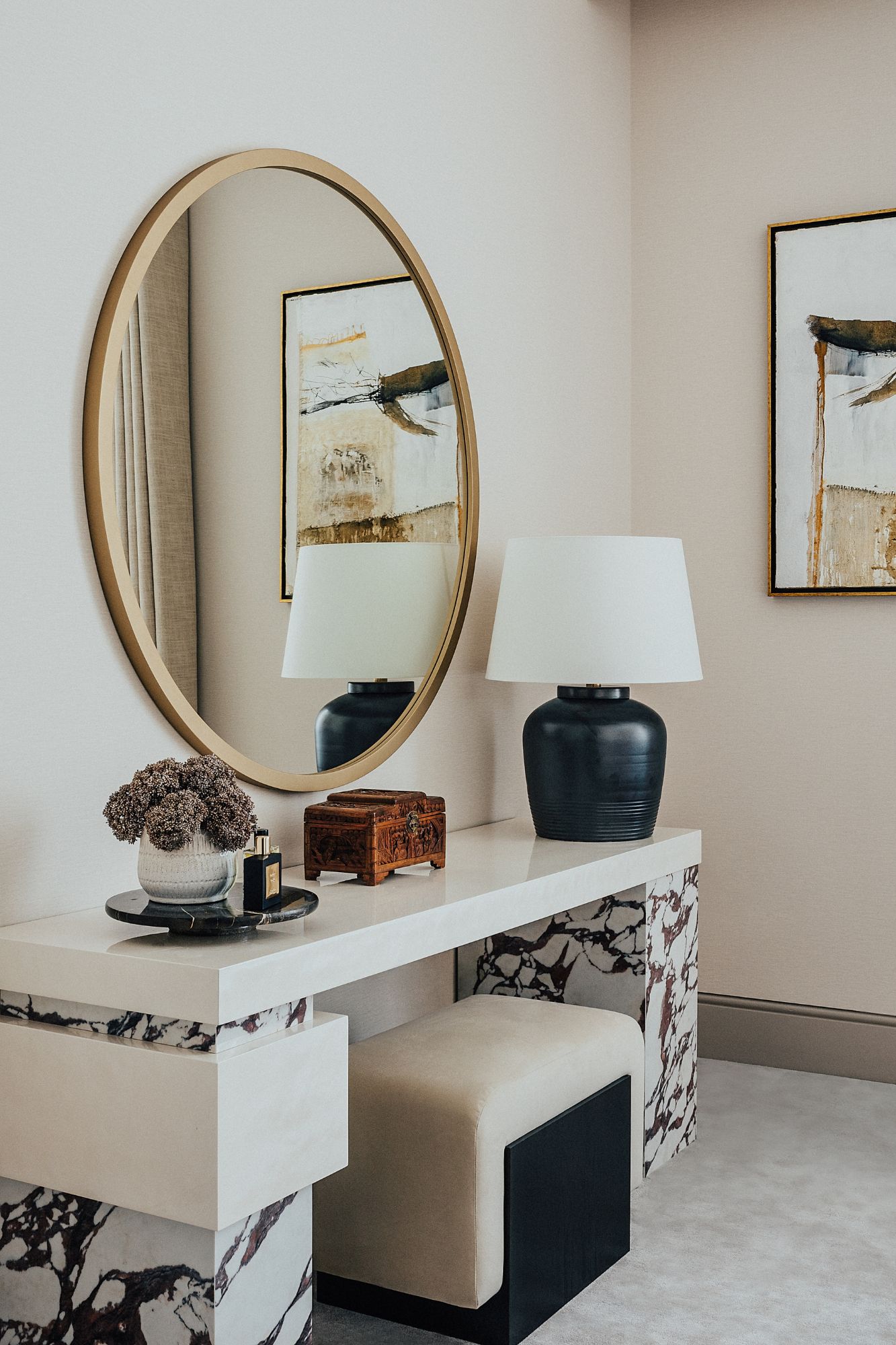 Roundhouse’s Ling Project illustrates this shift with Vibia’s Mayfair table lamp in gold satin placed on the island. Its soft glow and touch-dimmer control offer a salon-like refinement, demonstrating how ambient lighting can add depth and cohesion in open-plan settings.