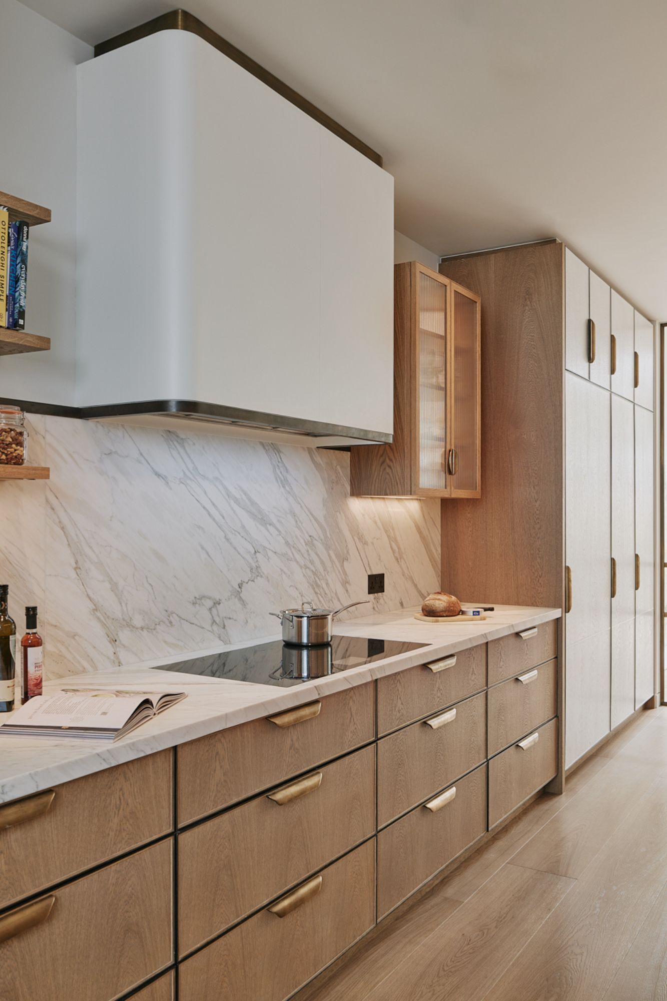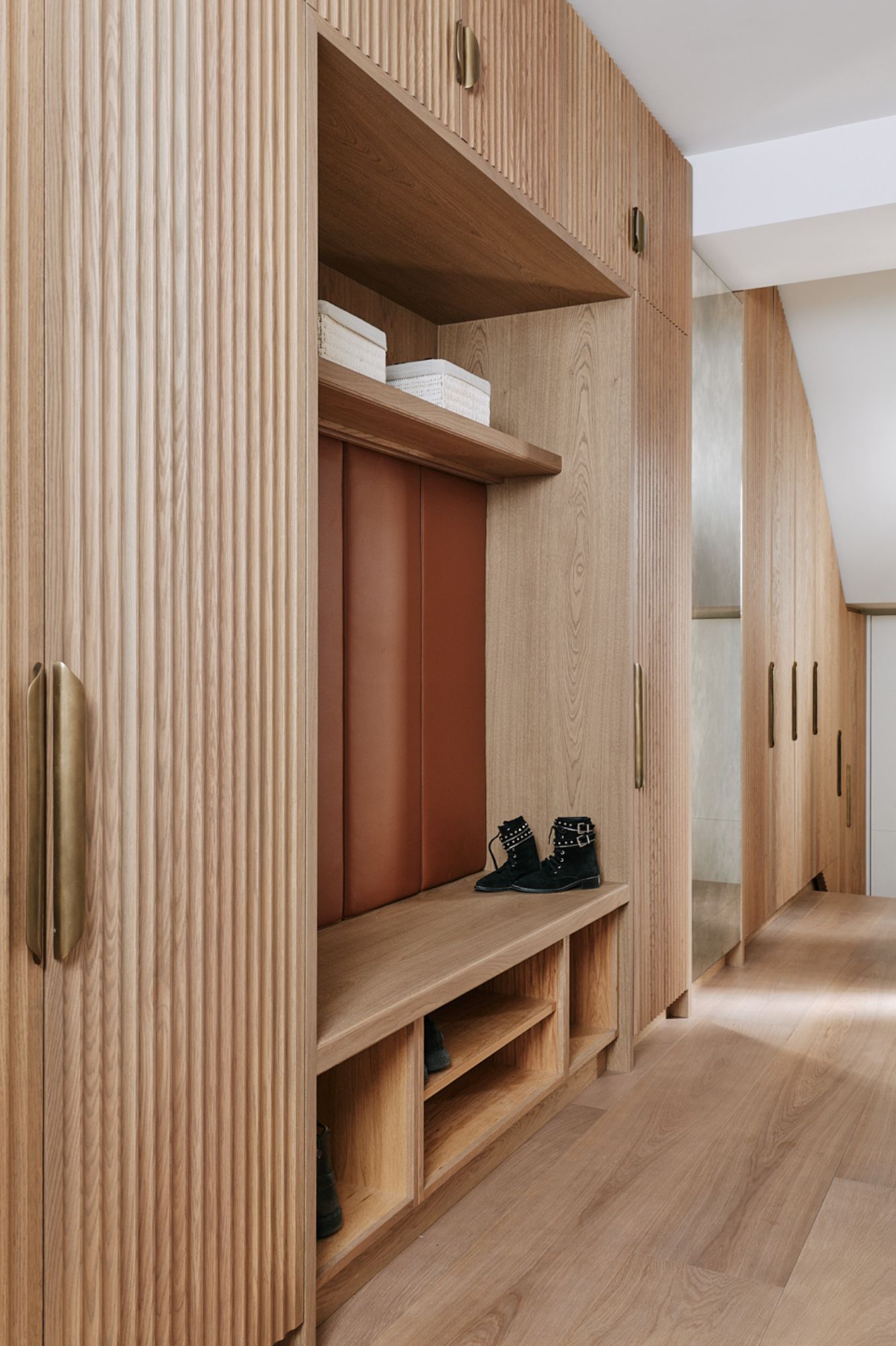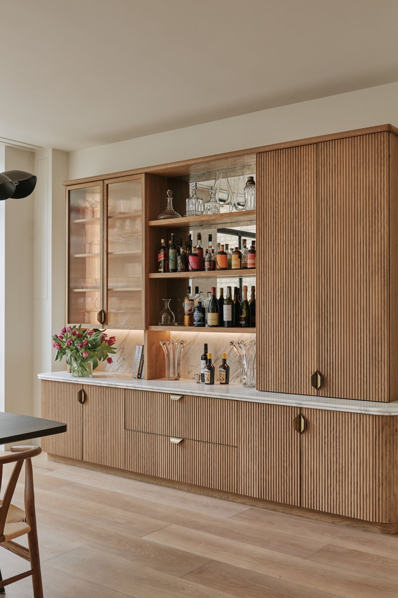The design was inspired by the client’s desire for balance, something understated yet sophisticated, where every detail contributes to a calm, considered atmosphere. Our use of textured walnut veneers, ultra-matte Fenix finishes, and the dramatic Neolith Calacatta Luxe framing created a refined contrast that feels both warm and contemporary. Further inspiration came from the client’s reference to European design studios, which guided the development of our bespoke solid-brass patinated handles, ultimately becoming a defining feature of the project.