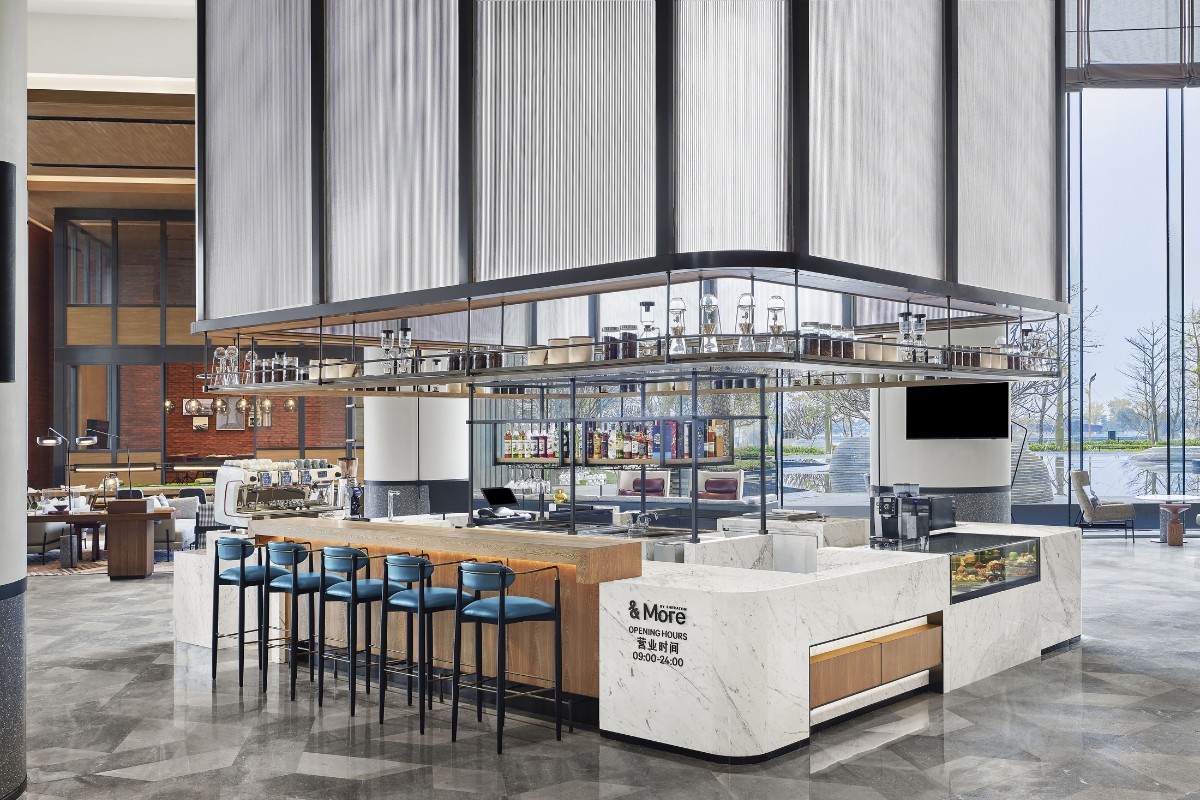 In the new design elements of Zhaoqing Sheraton hotel, the integration of work and enjoyment is at the heart of the design, using the concept of open shared space in the lobby of the hotel. The integrity of the space makes it vibrant and belonging, with open spaces for guests to socialize or spend time alone. Adhering to The Sheraton brand concept, Zhaoqing Sheraton incorporates many of the brand's new signature elements, including a shared community table, that is compatible with form and function, it was designed for guests to work efficiently, and for flexible meeting space for team members to collaborate in a relaxed atmosphere. Add vitality to the entire public space, as well as small meetings and private dining. The hotel also has 3 original restaurants and a specialty bar, serving a range of local and international cuisines, that can let the guests enjoy the wonderful environment while focusing on their work.