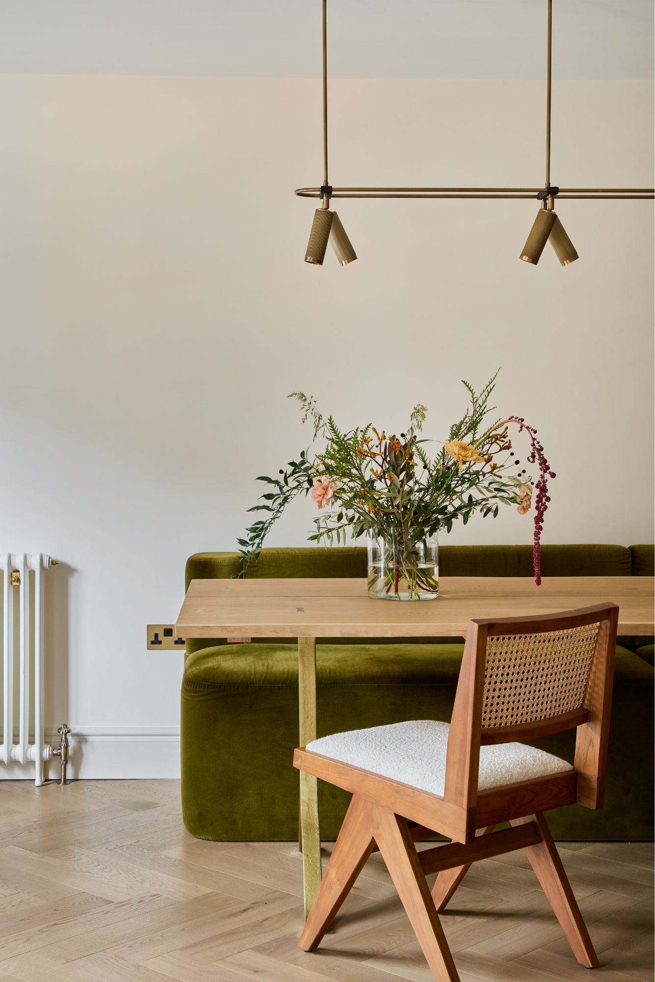 The client desired a home with an eclectic feel — a place that worked for two but could easily welcome ten, somewhere to escape the pace of city living while still feeling rooted in Notting Hill. Maintaining the charm and character of the Victorian duplex was central to the brief. Our client wanted as much of the original fabric preserved as possible, so we reconditioned the sash windows, coving and skirting boards, sanded and re-stained the oak floors, and carefully restored the fireplaces and exposed brick. Beyond the architecture, the client also wished to weave her upbringing and close family bond into the home. By integrating her family’s artwork, accessories and even lighting, we created an immediate sense of connection and belonging.