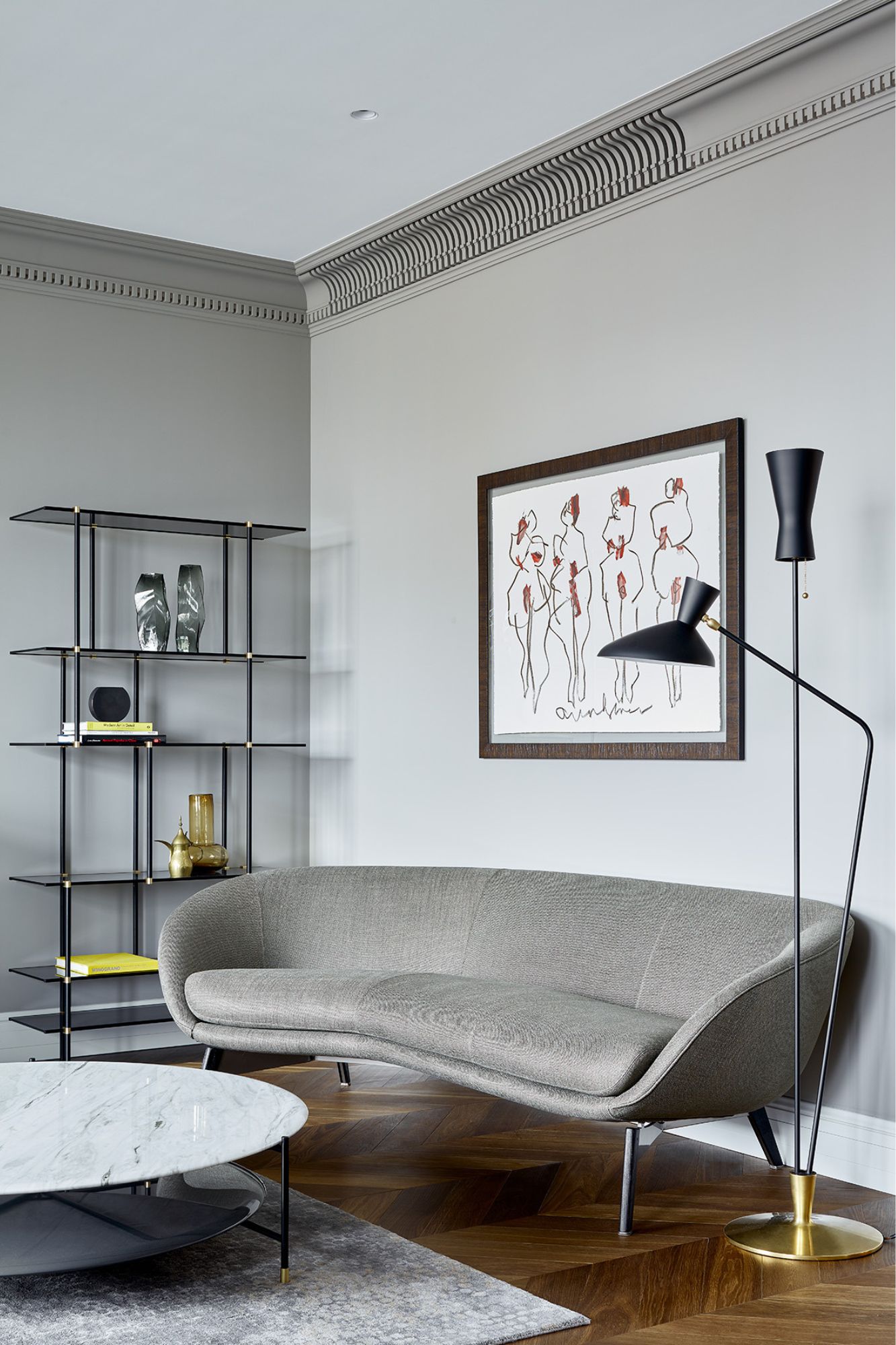 Our chosen palette leans toward restraint, defined by soft neutrals and muted hues that amplify natural light and celebrate the building’s architectural details. This subtle backdrop allows texture to take centre stage - polished surfaces meet tactile fabrics, and heritage moldings sit effortlessly alongside clean, modern lines. The interplay of these materials creates both tension and harmony, resulting in a space that feels timeless yet distinctly modern.