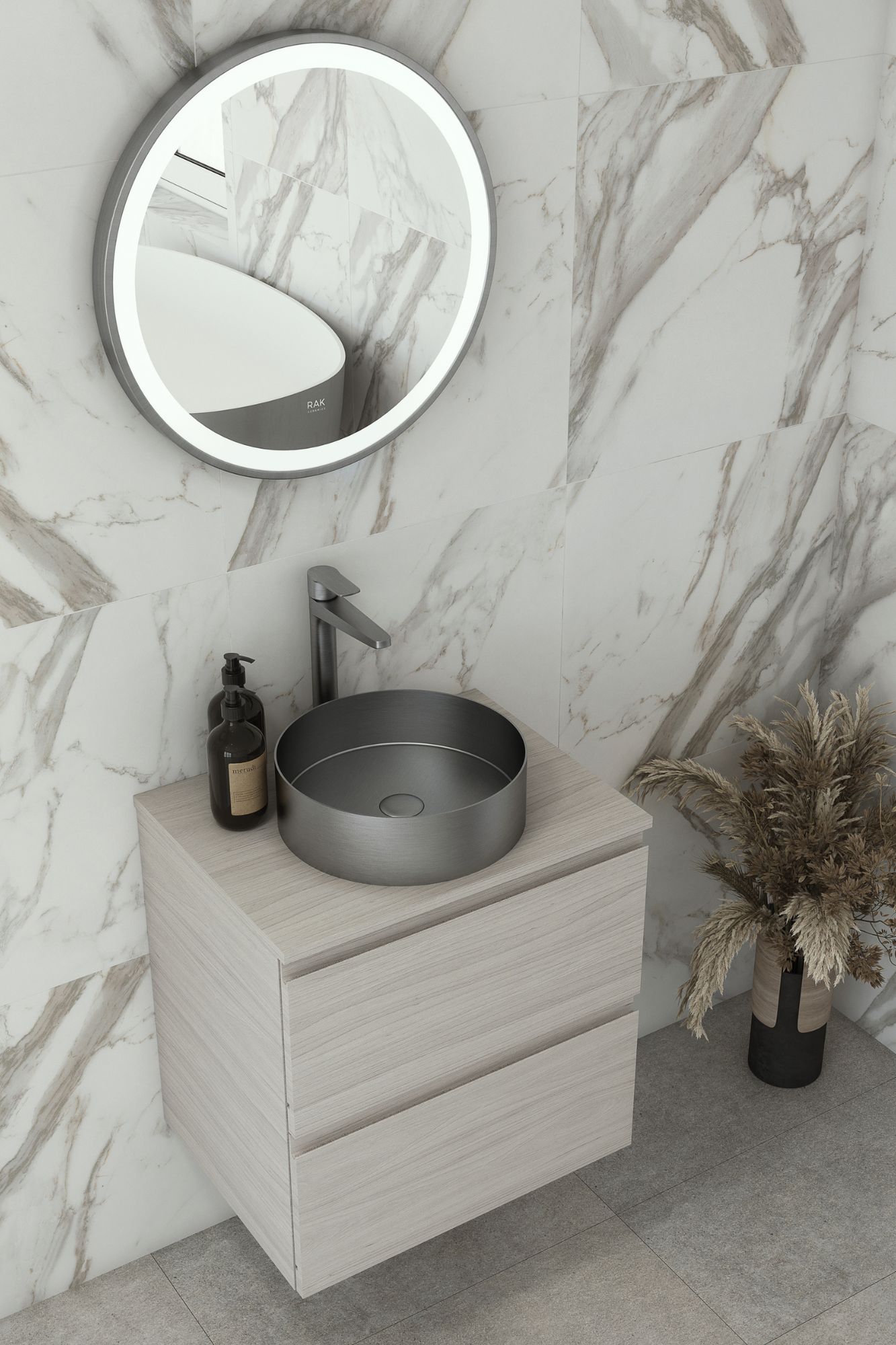 Created for RAK Ceramics by renowned Italian designer Giuseppe Maurizio Scutellà, RAK-Petit is a collection of small washbasins designed with small spaces in mind. With minimal shapes and small dimensions, the collection includes deep-based washbasins that can be installed alone or combined with RAK-Joy vanity units.