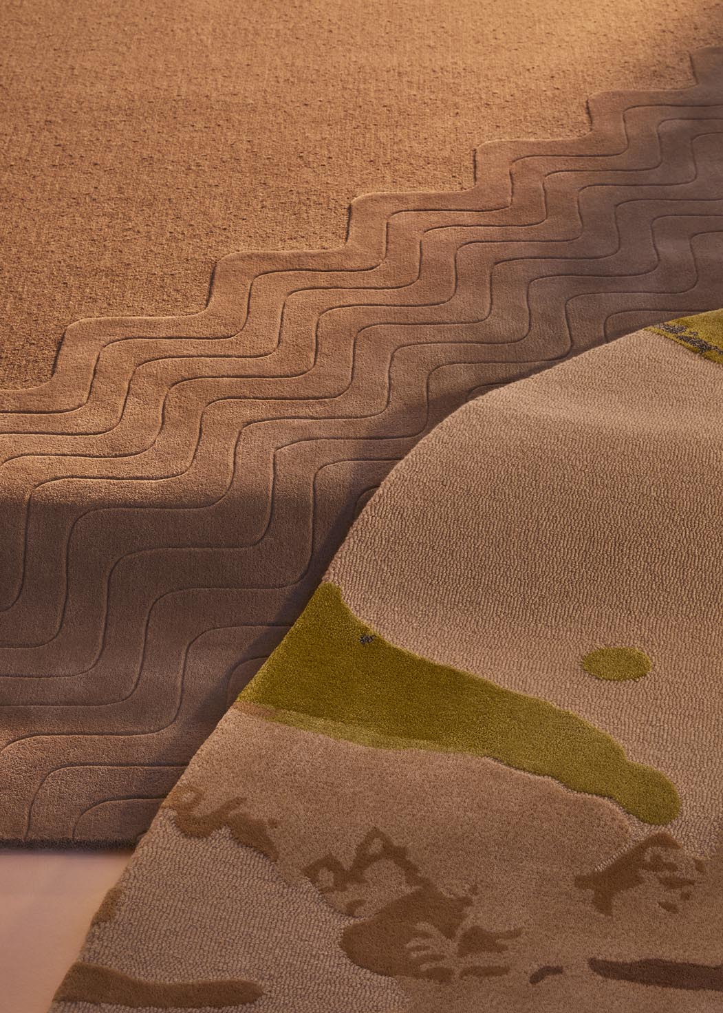 “Due to the success and popularity of our previous textural collections, including Saltwater and Lagoon, the team experimented with new construction and fade techniques to produce never before seen textures, patterns and fibre combinations that push the limits of virtuosic hand-tufted rug manufacturing,” says Ceberek.